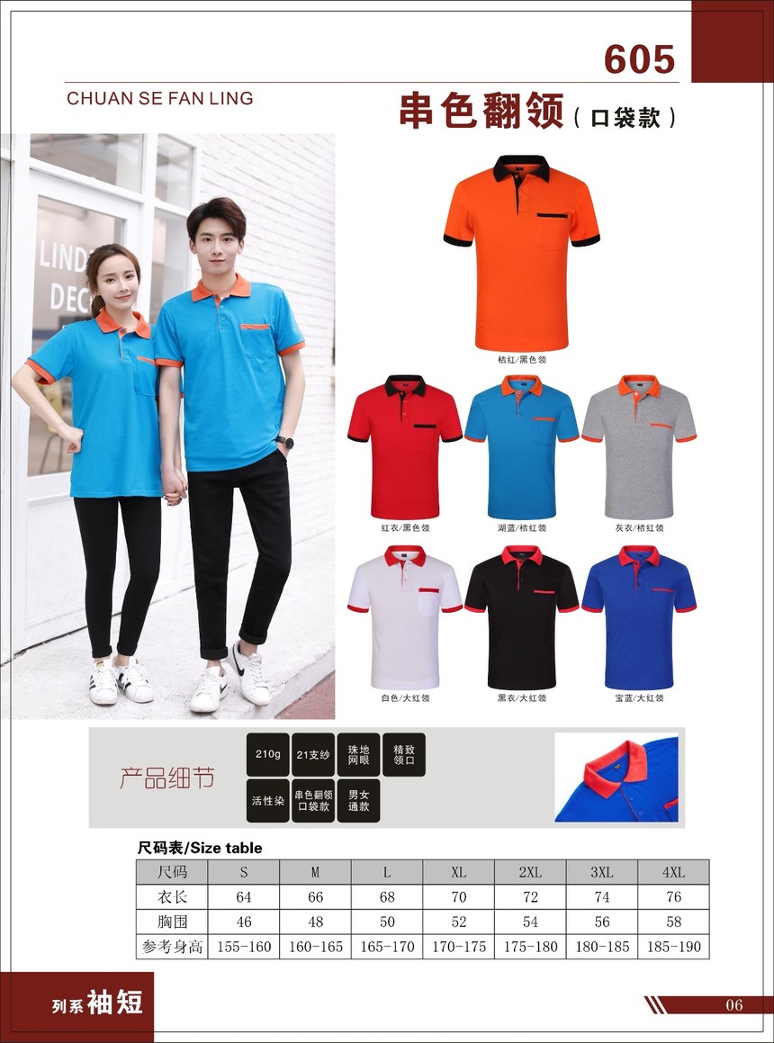 GT5,190克40支冰凉丝光棉间色二级翻领